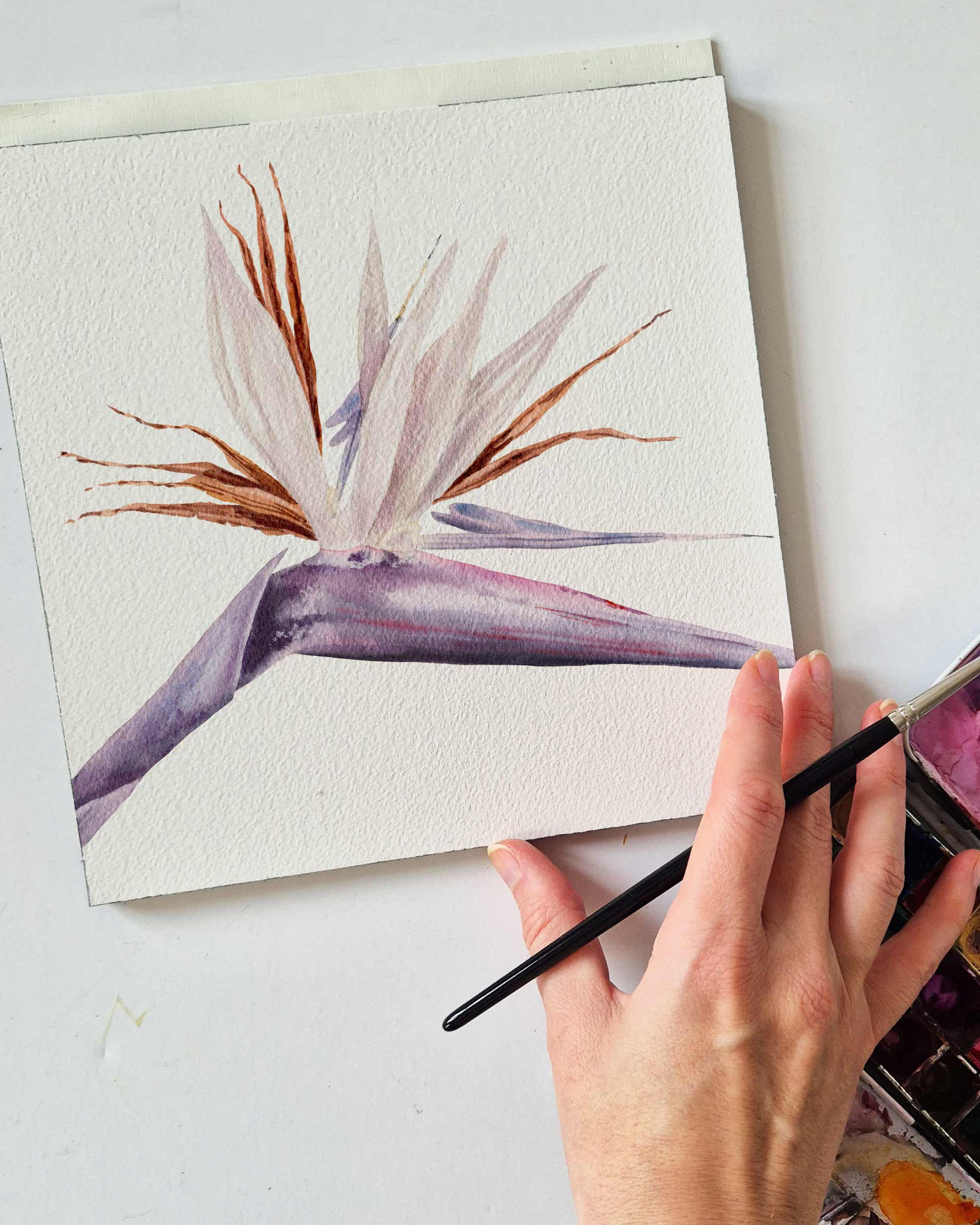 Die Strelitzie Alba durch ihre dezenten Farben und der extravaganten Form eine so zauberhafte Blüte - ihre farbenfrohe Schwester habe ich schon mehrfach gemalt.