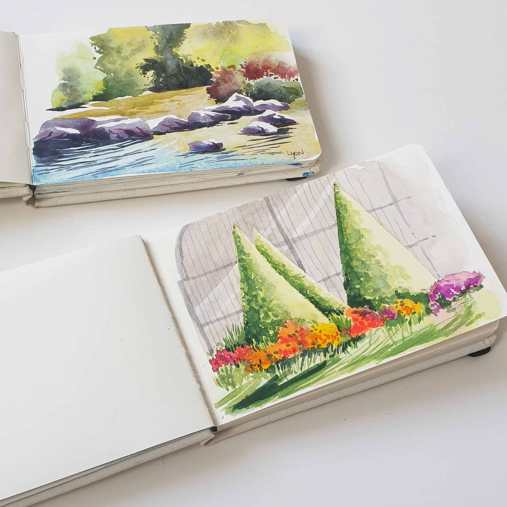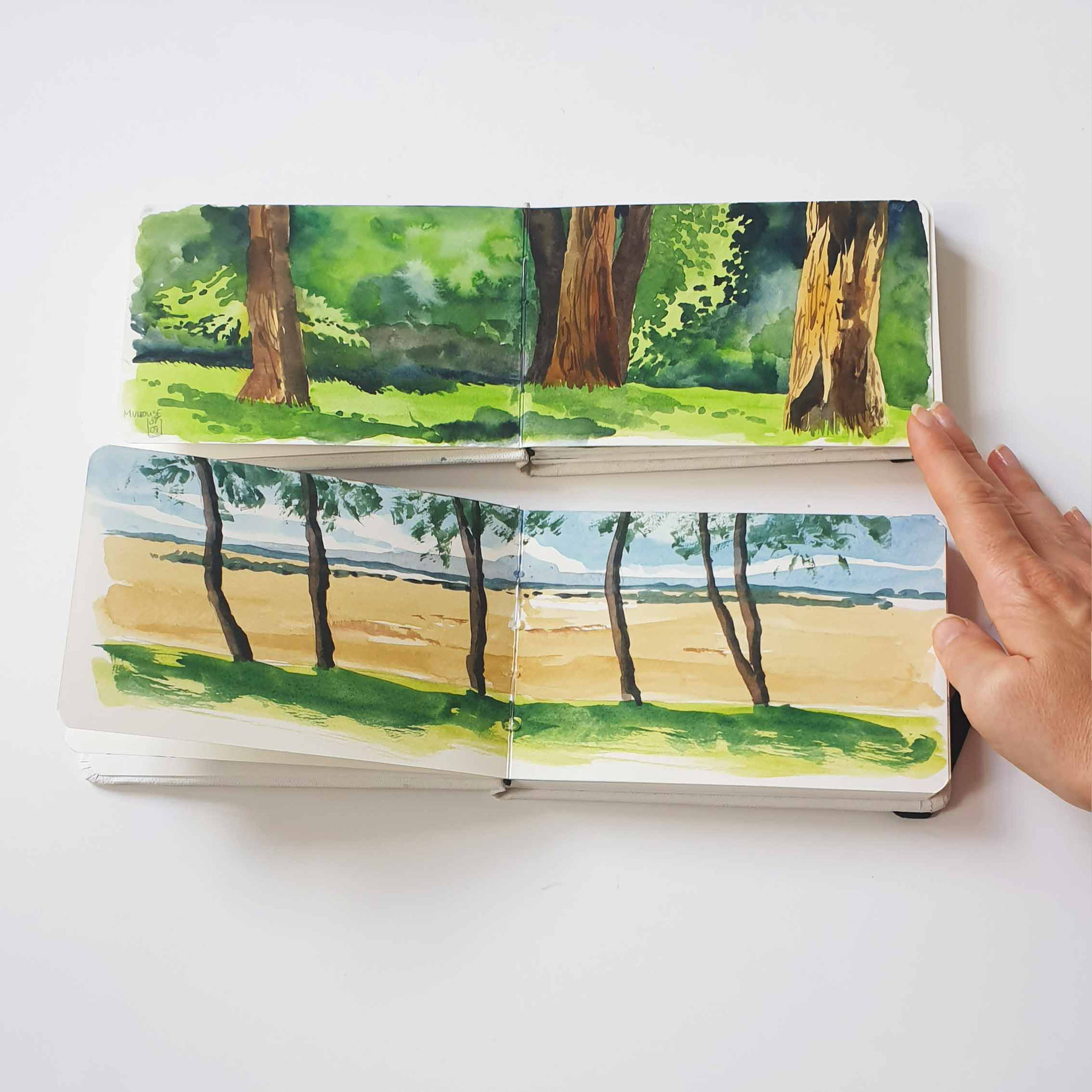 Im Mitgliederbereich und im SkizzenbuchSeptember malen wir unterschiedliche Landschaften mit Aquarellfarben. Schritt für Schritt erklärt als Videokurs mit Abpausvorlagen und Referenzfotos zu vielen der Motive.